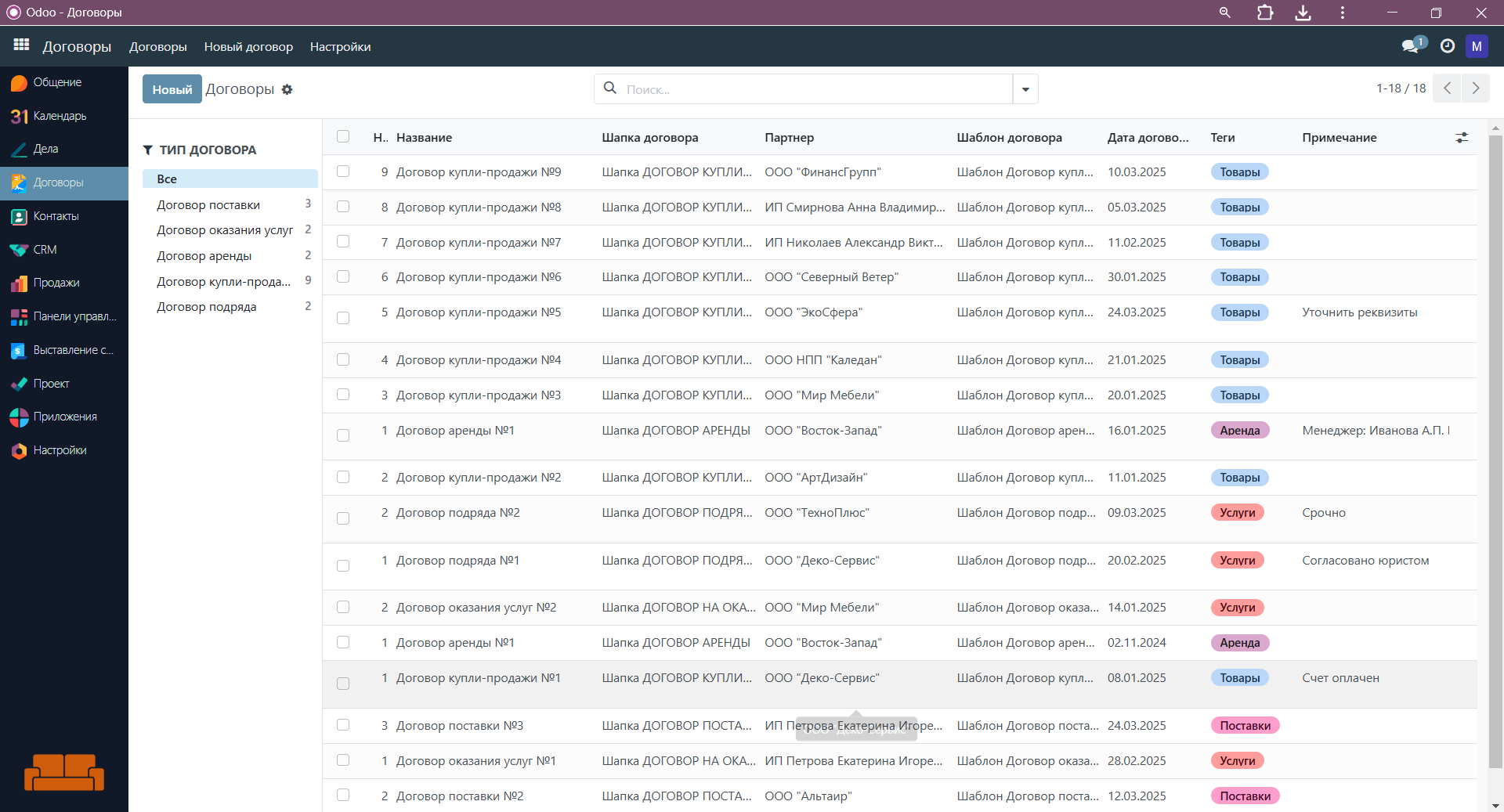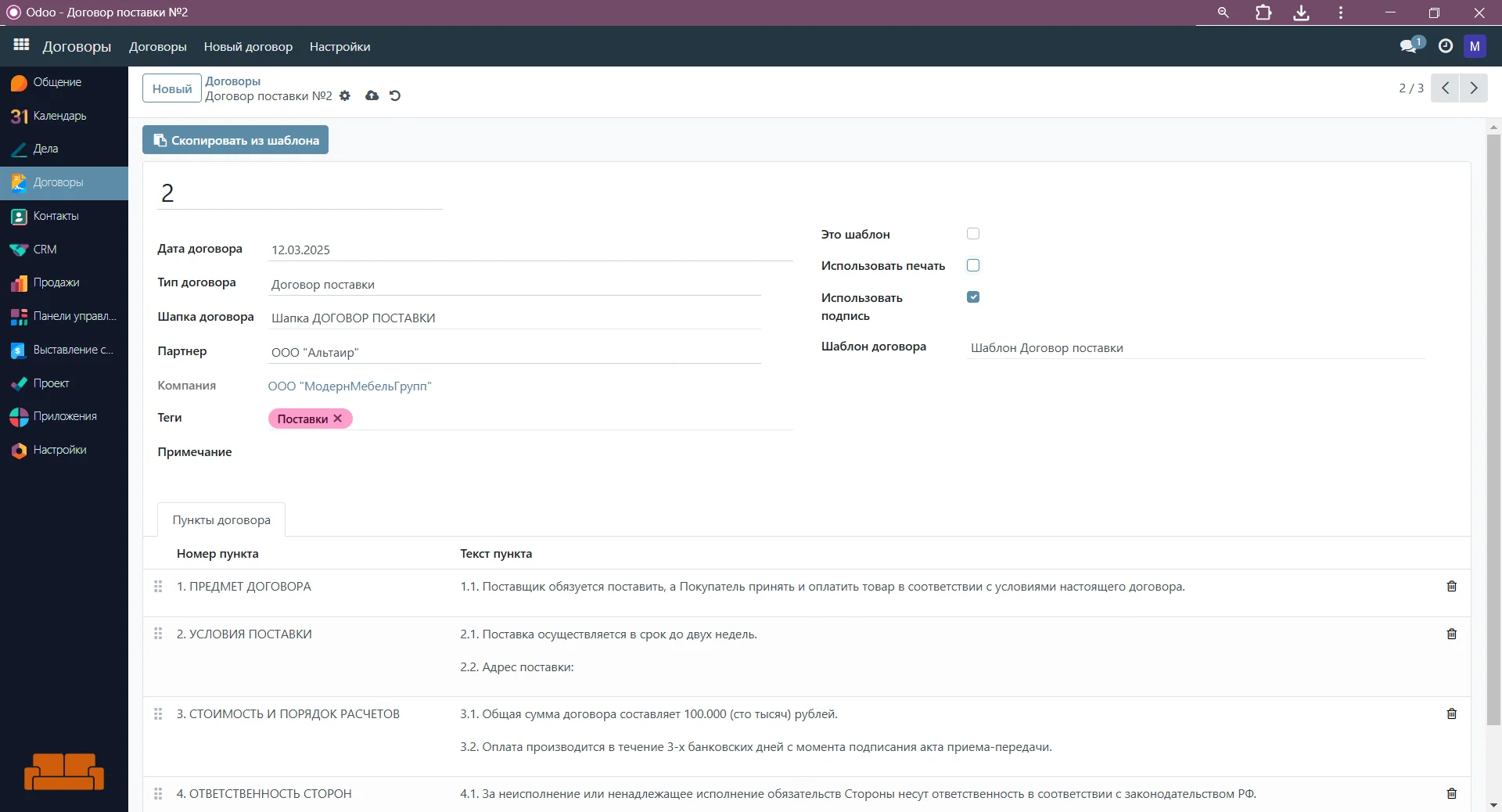Оптимизируйте документооборот вашей компании с помощью готового модуля для работы с договорами. Полностью интегрирован в Odoo ERP
